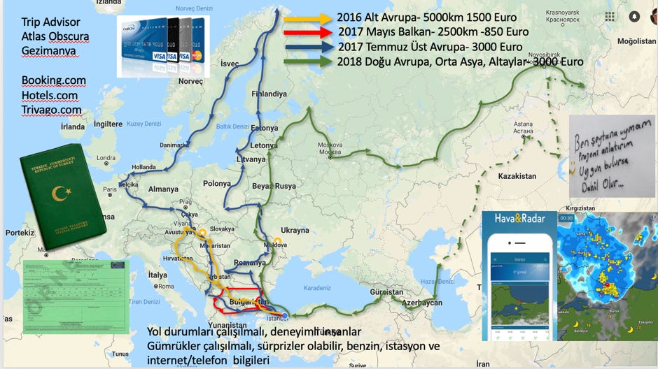 After deciding the destination to reach the route to it and the route back home should be planned. The route should be mostly a new route to me. It is the most important thing for me when planning. New countries, new cities, new roads and so on. The condition of the roads should be examined too. Sometimes roads may be in terrible conditions to ride. Also some customs may have special conditions for example, can only allow citizens of neighboring countries to cross. Visa is another important thing that should be cross checked. Going abroad with motorbikes need special requirements like green insurance (international insurance) and motorcycle should be registered on the rider or needs a paper from the owner allowing you to ride abroad.