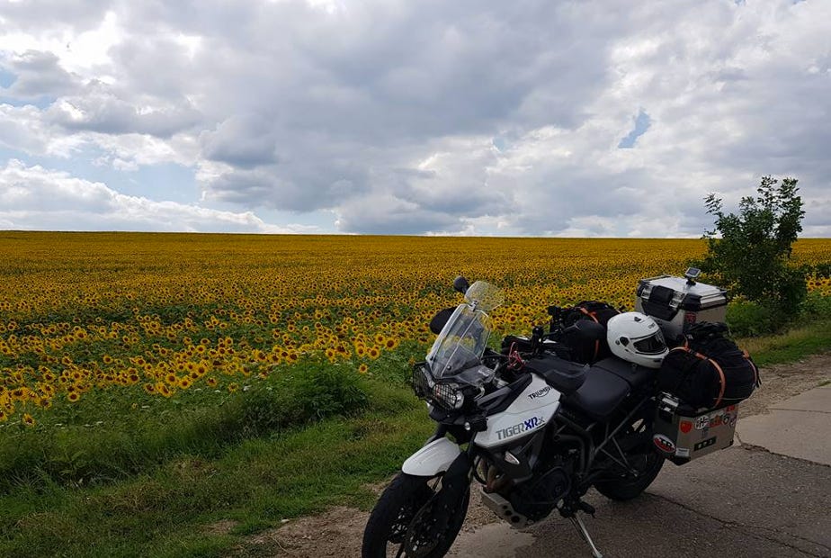 The next stop was Kiev. We moved from Chisinau to Kiev. Ukrainian customs were very troubled. They opened and closed our bags 3-4 times. They got us wait a long time. Then we were asked to fill out a form in Russian language, but no explanations in English. “How can we fill?”, we asked. They asked 50 Euros from me and 30 euros from Erhan. When we asked why, they said it’s for filling the form. They were asking for bribe. They also stated that there are English forms at other customs 300km away. It was a joke. We resisted a little, but then we had no other logical choice. After riding an empty road about 10km from the customs he arrived at another custom office again and seriously re-checked us one more time. We really got tired and upset. We finally got out of the customs, but we started riding on such a bad road that we can't tell with words. The asphalt was very old and falling apart but under the asphalt was concrete old road. The asphalt is riddled with holes everywhere and we are constantly falling into the pit and we have no chance of escaping and drove like this for 80 km. It sounded like the bike was torn apart. Suddenly, the side bag broke. The plastic parts that holds the carriage were broken from the bottom. I tied it up with a rope. There was strange sounds coming from the suspension. At the end of 80km we took a highway. Our morale was so bad that we stopped at the first gas station where we saw the people and civilization. Then we relaxed a little.