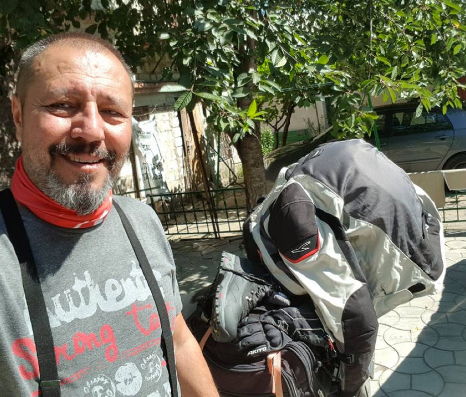 We went down from Transfagarashan to Curtea De Arges. It was a small town as far as I remember but it had a great cathedral. When we got there, we had nothing left dry on our bodies. We stopped in a gas station to change, we asked for an empty space, we wore dry things. Here we met Atti Veri. Atti is a German and traveling on his bike. I've added it on Facebook and I'm following him. He also rides a lot to see new places.